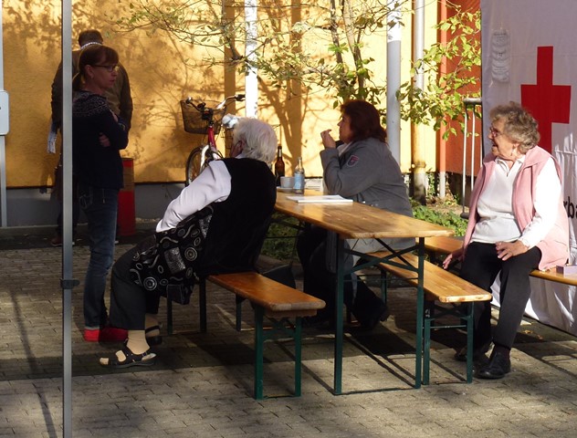 Mit dem Wetter hatten wir großes Glück, wenn es auch etwas kalt war, sodass sich nur wenige Besucher/innen draußen aufhielten und lieber im Begegnungszentrum waren.Die Stimmung war sehr gut, was sicherlich auch am guten Essen und der flotten Musik lag, die in allen Räumen gespielt wurde. Im nächsten Jahr soll es dann vielleicht ein Sommerfest geben, um bei höheren Temperaturen auch mehr draußen feiern zu können.